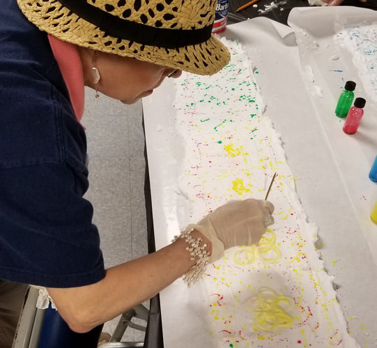Once again our latest DoART event was SOLD OUT! Thanks for all who came out on Wednesday, September 26 to the Deale Elks Lodge. Fiber and watercolor artist Lynne Gessner led guests through various techniques to create two beautiful silk scarves—using acrylic ink paints and shaving cream! Yes, it works! Want to get in on the next DoArt event? Check out the page here for more information!